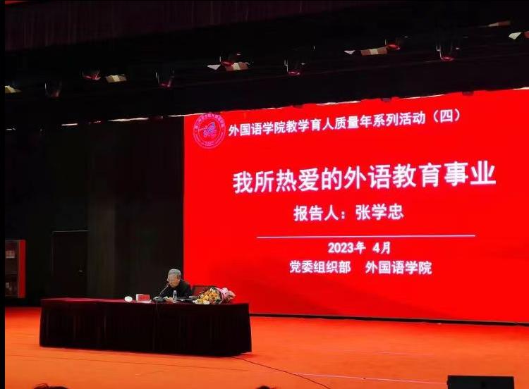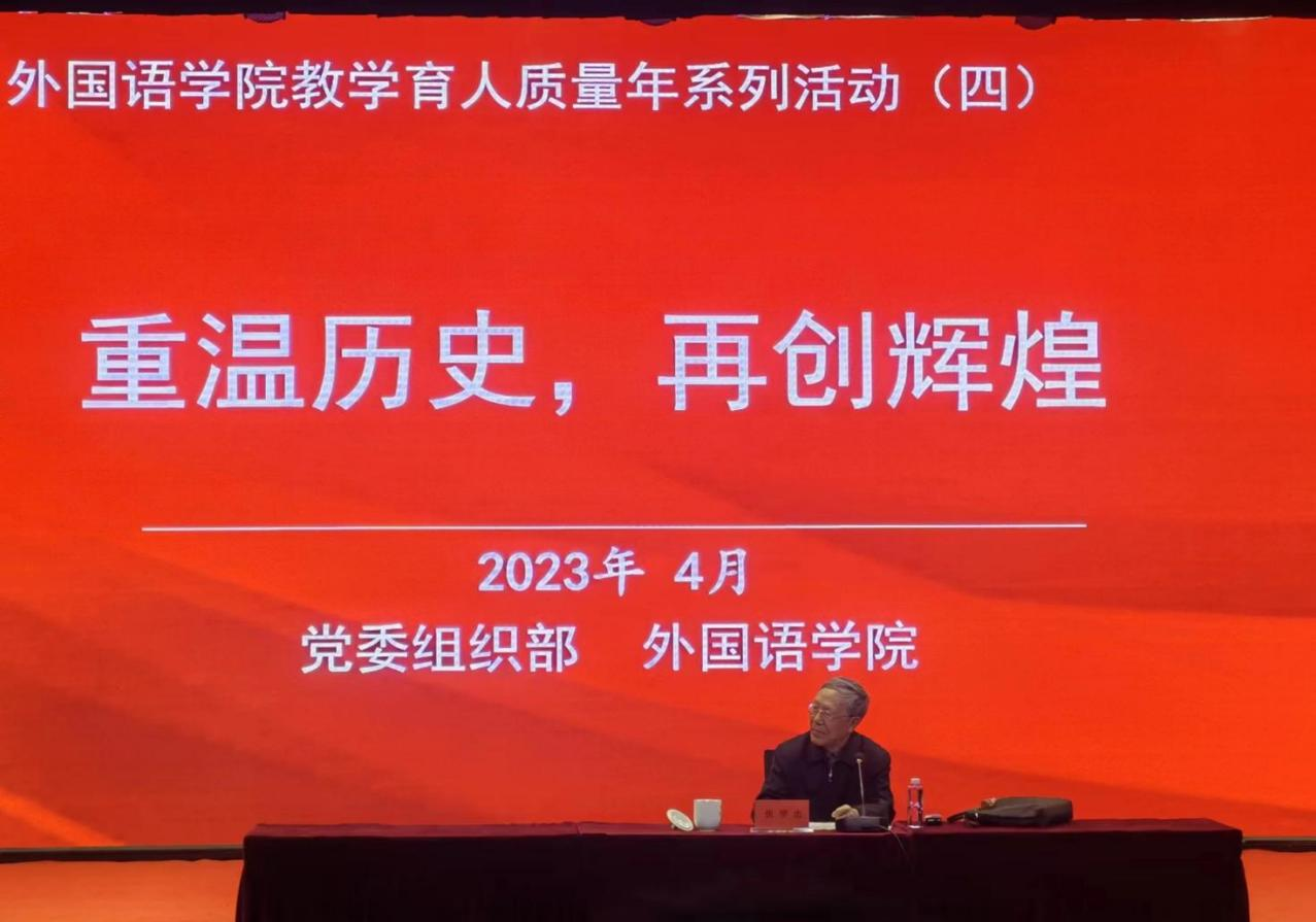 为重温beat365在线唯一官网的光荣传统,砥砺师生传承精神担当使命,beat365在线唯一官网同党委组织部于2023年4月4日下午,联合举办了beat365在线唯一官网教学育人质量年活动之四——原外语系老主任张学忠教授应邀来beat365官网在北院文体馆小剧场为全体师生作了题为《我所热爱的外语教育事业》的报告,本次活动由beat365在线唯一官网院长唐翠云主持。