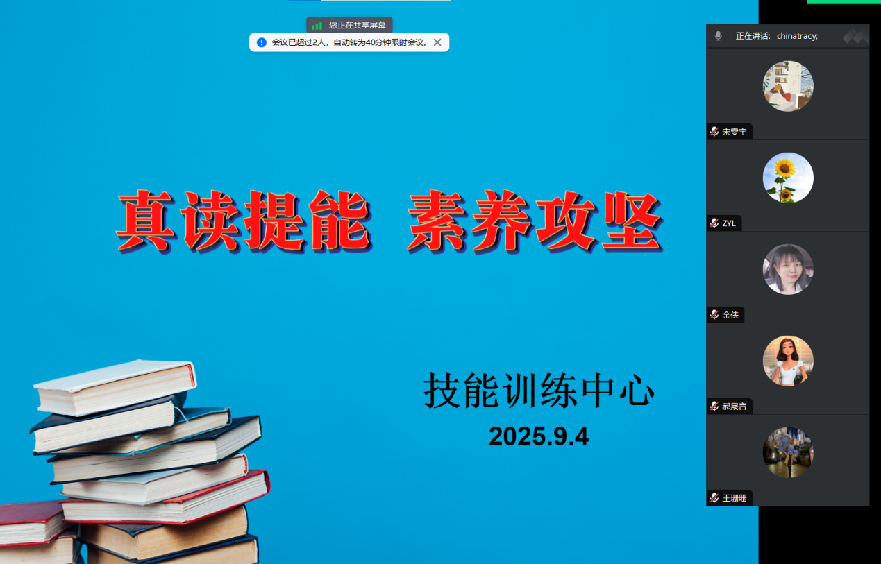 2025年9月4日,beat365在线唯一官网本学期技能训练专项研讨会在线上顺利举行。27位教师围绕外研阅读平台的应用以及技能训练实效的提升,展开了深入且富有成效的交流。会议着重聚焦于三大核心议题:训练平台的有效落地执行方案、学生真实阅读策略的设计,以及听说读写综合能力的培养路径。