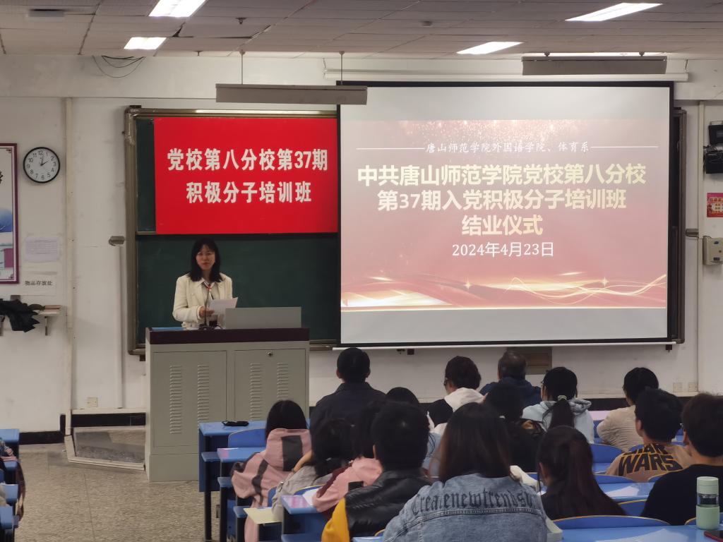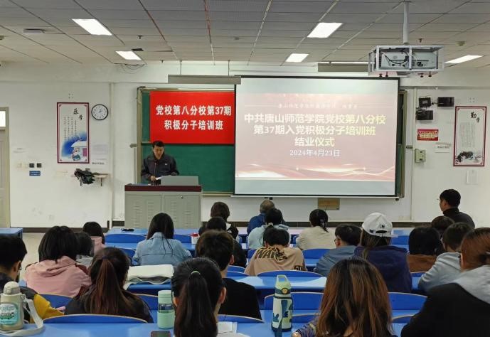 2024年4月23日下午,beat365在线唯一官网在北院文十阶梯教室举办第三十七期入党积极分子培训班结业仪式。党校第八分校副校长、体育系党总支刘云伟书记;beat365在线唯一官网党总支谷世海副书记,beat365在线唯一官网学生第二党支部书记郑璐瑶老师;beat365在线唯一官网组织员霍金侠老师、体育系组织员张帅老师、体育系学生党支部书记郭印乔老师出席结业仪式。