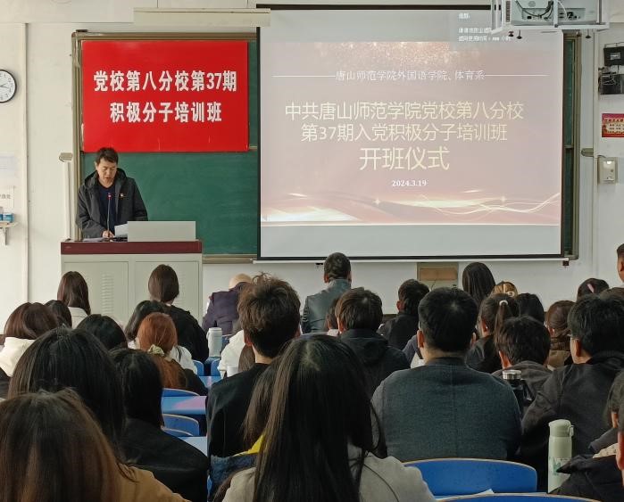 2024年3月19日,beat365在线唯一官网和体育系联合举办了中共唐山师范学院党校第八分校第37期入党积极分子培训班开班仪式。beat365在线唯一官网党总支书记刘建宏同志、体育系党总支书记刘云伟同志、beat365在线唯一官网党总支副书记谷世海同志、体育系党总支副书记常海龙同志、beat365在线唯一官网组织员霍金侠同志、体育系组织员张帅同志、beat365在线唯一官网学生第一党支部书记赵一同志、学生第二党支部书记郑璐瑶同志、体育系学生党支部书记郭印乔同志以及全体培训学员参加了此次开班仪式。