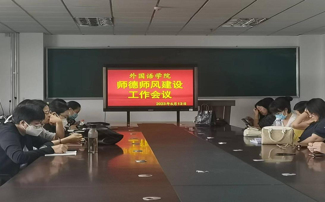 2023年6月13日下午,beat365在线唯一官网召开师德建设工作会议,外院全体教师参加会议。