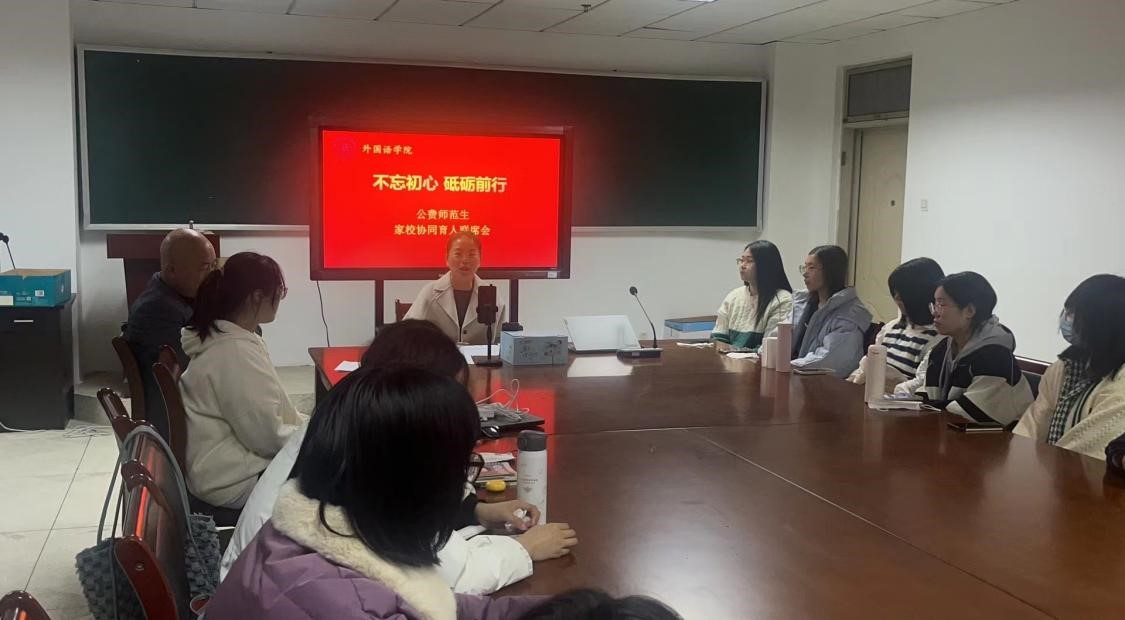 2022年10月21日18点,beat365在线唯一官网召开公费师范生家校协同育人联席会议。会上,beat365在线唯一官网副院长唐翠云首先介绍了公费师范生的基本情况和学校的整体想法,之后就《唐山师范学院关于提高公费师范生培养质量的实施方案(试行)》【院字〔2022〕107号】和《beat365在线唯一官网提高公费师范生培养质量实施细则》两份文件进行了详细解读,提出通过家校努力共同把公费师范生打造成外院乃至师院名片的美好愿景。