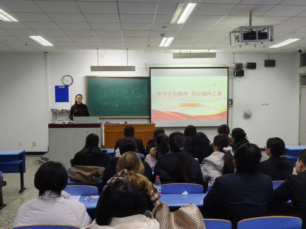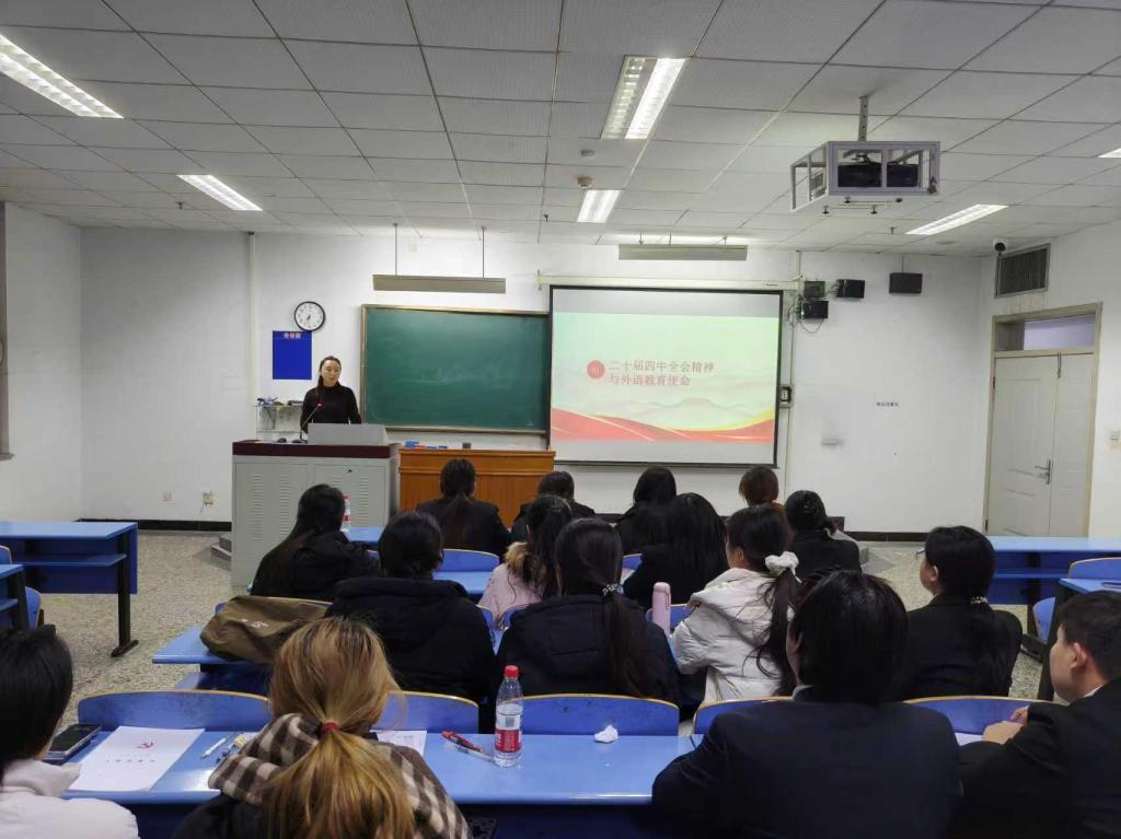 为深入学习宣传贯彻党的二十届四中全会精神及习近平总书记在全会上的重要讲话精神,切实把全体师生的思想和行动统一到全会精神上来,近日,beat365在线唯一官网党总支副书记曹丽君面向全体学生开展“深学全会精神 笃行强师之路”主题宣讲,为外院学子解读全会精神核心要义,指引专业成长与职业发展方向。