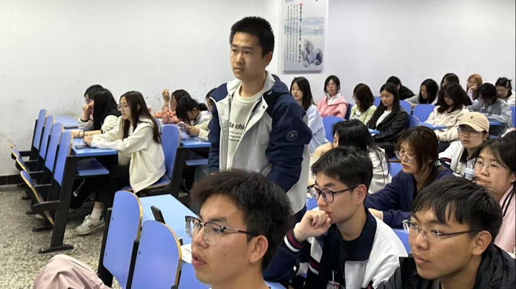 本次分享会特别邀请到在四级考试中取得优异成绩的郭家豪学长与缴砚钊学姐担任主讲嘉宾。分享会上,郭家豪学长聚焦四级考试流程与听力板块,结合自身经验,深入剖析读题技巧,细致阐述考前准备要点。缴砚钊学姐则围绕阅读、写作及翻译部分展开讲解,通过列举大量典型案例,分享阅读定位技巧,以及搭建写作逻辑架构的方法,帮助同学们构建起对四级考试更为清晰的认知框架。互动环节将现场气氛推向高潮。两位嘉宾针对“考前冲刺规划”“高频词汇记忆法”等热点问题,与同学们展开深度交流。主办方特别准备的《四级高频词汇手册》和《真题精析》等备考资料,通过有奖问答形式赠送给积极参与的同学。现场学习氛围浓厚,反响热烈。