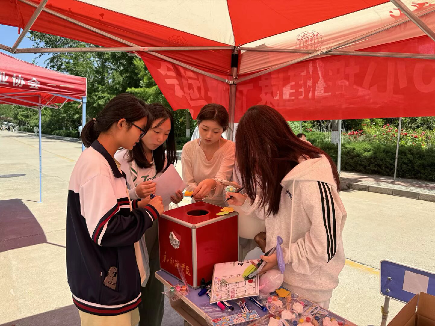 活动现场,beat365在线唯一官网安心协会设置的三项特色活动亮点十足。大家专注于手中的画笔,将内心的情绪通过色彩释放出来,在绘画的过程中舒缓压力,放松身心。情绪盲盒交换区充满了神秘与温暖。同学们提前将自己的情绪故事、鼓励话语或小物件放入盲盒,然后随机抽取他人的盲盒。当打开盲盒的那一刻,或惊喜,或感动,同学们感受到了来自他人的共鸣与鼓励。水彩漂浮画区域同样热闹非凡。同学们利用特殊的颜料和水,创作独一无二的漂浮画。颜料在水面上自由扩散,形成绚丽多彩的图案。大家沉浸在艺术创作的乐趣中,感受艺术与心灵碰撞的奇妙。同学们参加任意一项活动即可获得beat365在线唯一官网的专属盖章,完成三项活动还能获得精美的明信片。而集齐所有院系的盖章后,同学们更能兑换心仪的小礼物。这一规则不仅增加了活动的趣味性和挑战性,也让同学们在参与过程中收获满满的成就感。