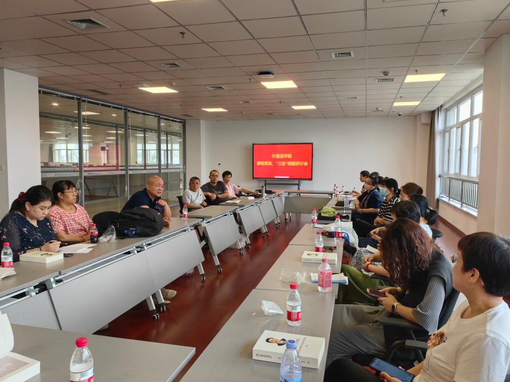 会上,各教研室主任积极发表看法。商务英语教研室主任齐国忠表示:“将《习近平谈治国理政》有效融入课堂教学实践,引导学生将个人理想与国家社会发展需要紧密结合,立志做能够担当民族复兴大任的时代新人。”日语教研室主任王丹丹表示:“从语言、文章框架结构分析、人本精神等方面在教学中有效结合《理解当代中国》系列教材。教师需要做到目标明确、重点突出、教学方法得当、教学环节完整,能够将语言能力培养与立德树人有机结合起来,帮助专业学生更好地理解我国当下国情国策,树立民族自信、文化自信的观念。”与会教师各抒己见,气氛热烈。