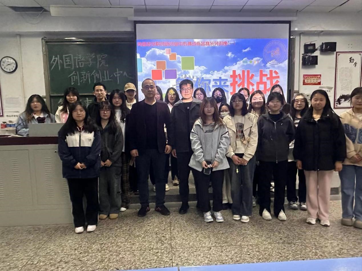 本次主讲嘉宾为唐山师范学院23届毕业生、唐山市青联委员、青年创业协会副秘书长张哲塬。张哲塬学长在众多挑战杯赛事中脱颖而出,得到了共青团的认可与国家的鼓励,是我们外院学子的榜样。在此次讲座中,张哲塬学长向外院学子们介绍了双创大赛的重要性以及如何取得骄人的赛事成绩,分享了自己的经验与心得。