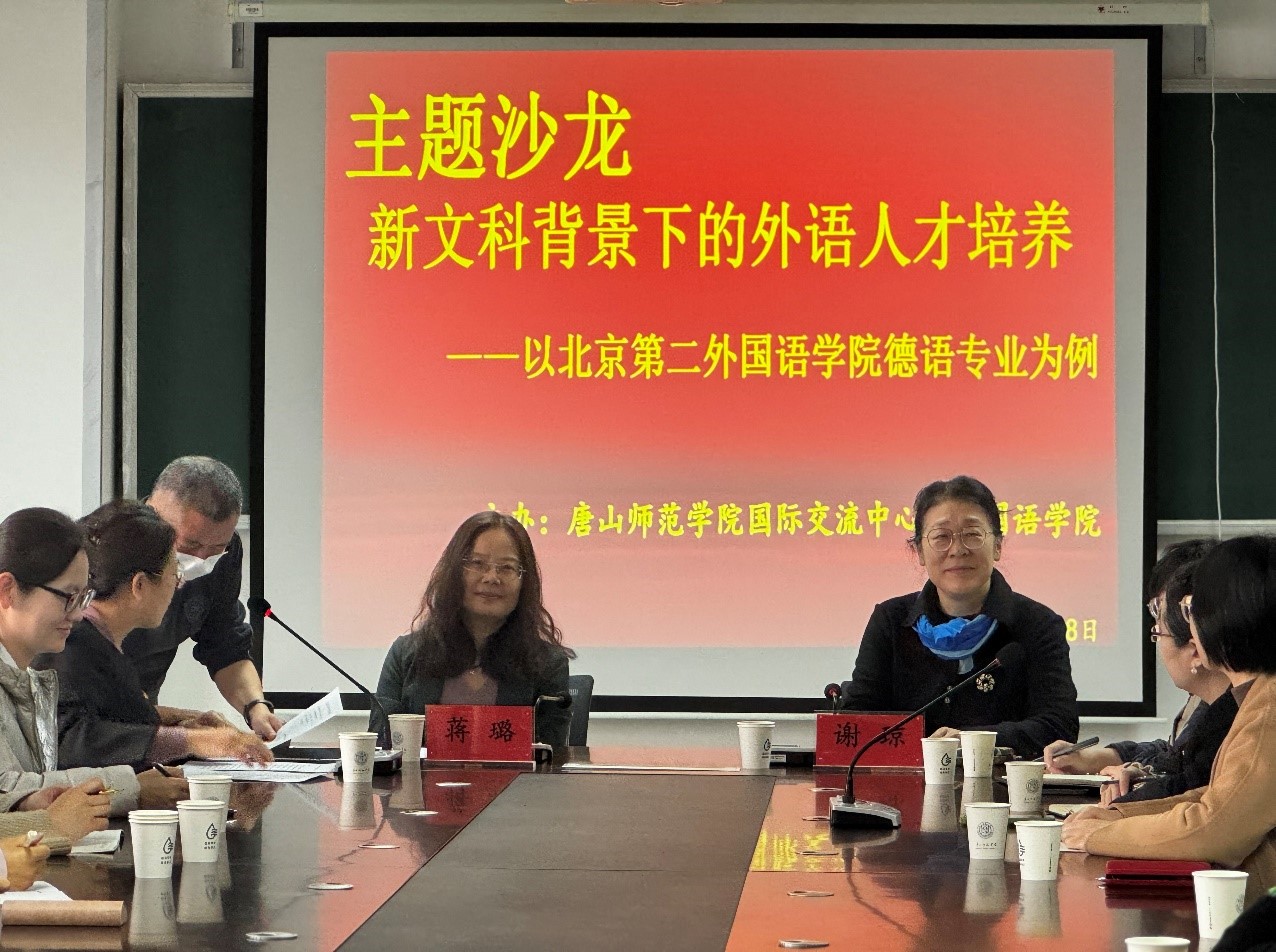 2023年12月8日,beat365官网有幸邀请到了北京第二beat365在线唯一官网欧洲学院蒋璐院长和谢琼教授来beat365官网进行题为《新文科背景下的外语人才培养——以北京第二beat365在线唯一官网德语专业为例》的专题讲座。beat365在线唯一官网院长唐翠云、德语教研室全体教师、日语教研室全体教师、各教研室主任、学术委员会成员、学科建设与科学研究委员会成员参加讲座。主讲人为谢琼教授。