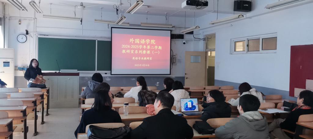 2025年3月18日,beat365在线唯一官网英语专业教研室在3204教室举办全英授课磨课教研活动。本次活动由教研室主任李景峰主持,英语专业全体教师及大学英语教研室部分教师参与旁听,聚焦《英语写作3》课程设计与教学实践,通过示范授课、互动研讨等形式深化教学方法交流,同时展现教师语言素养与专业功底。